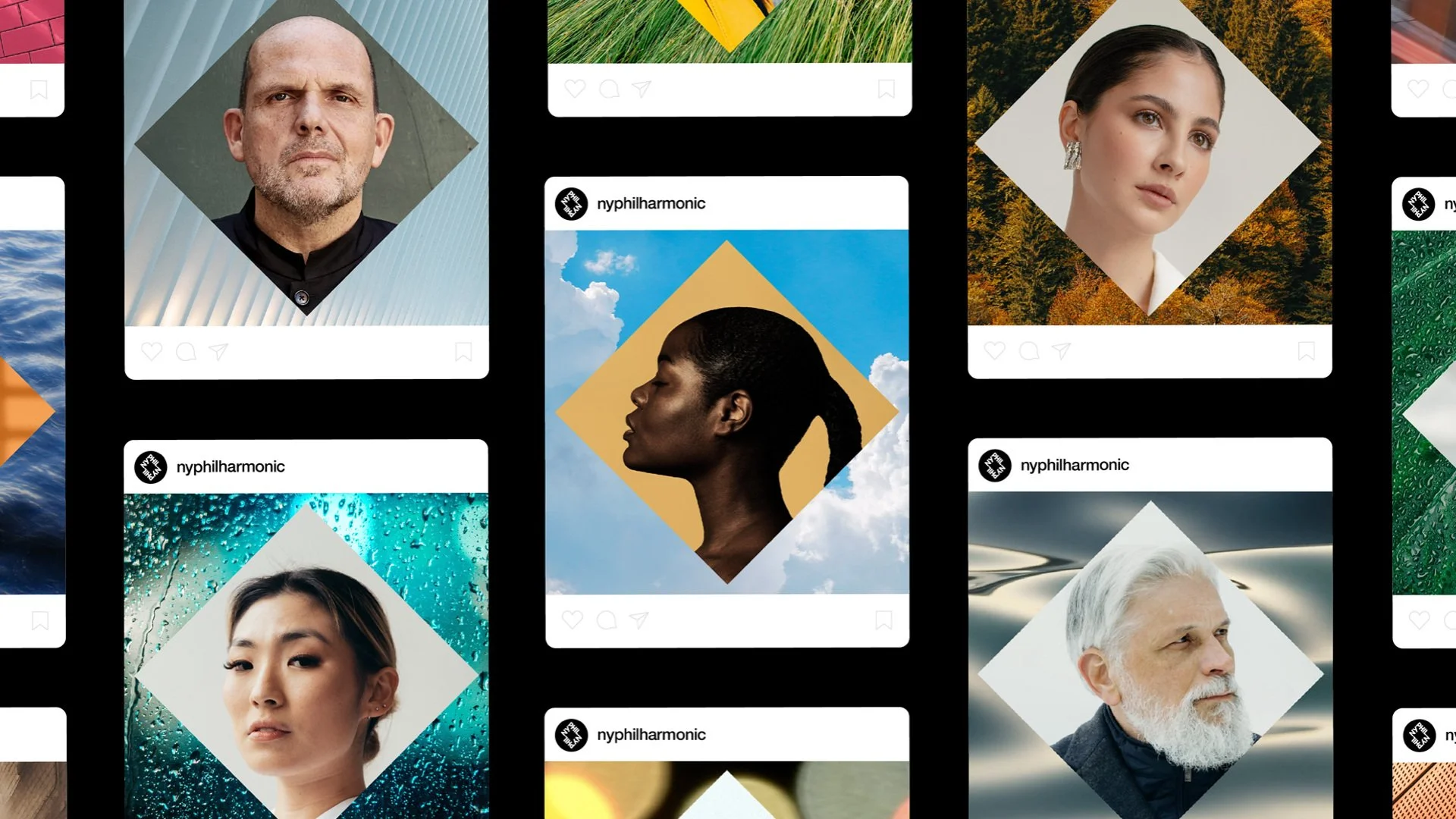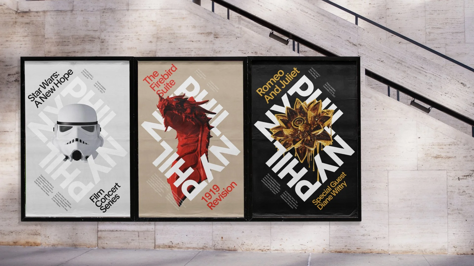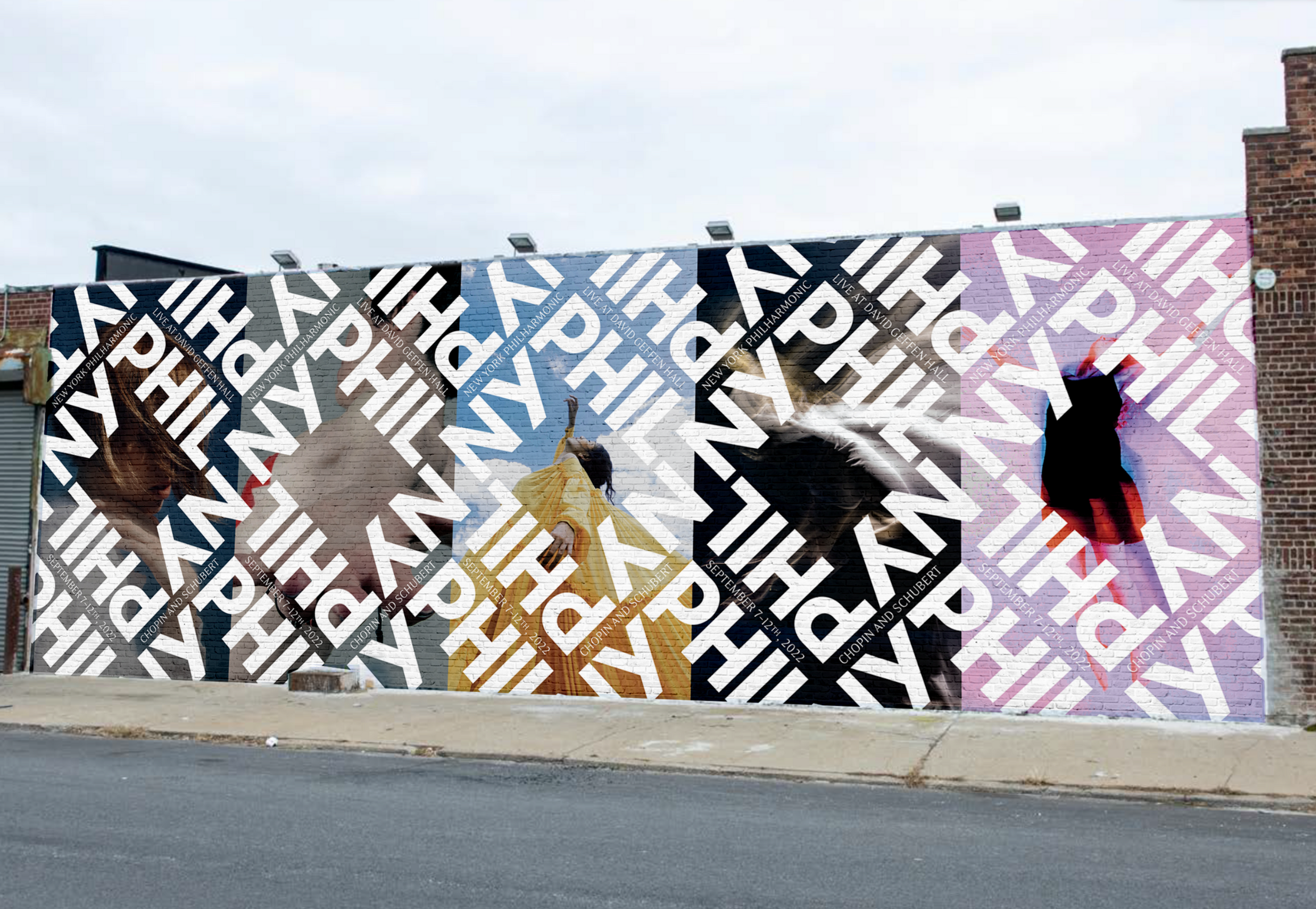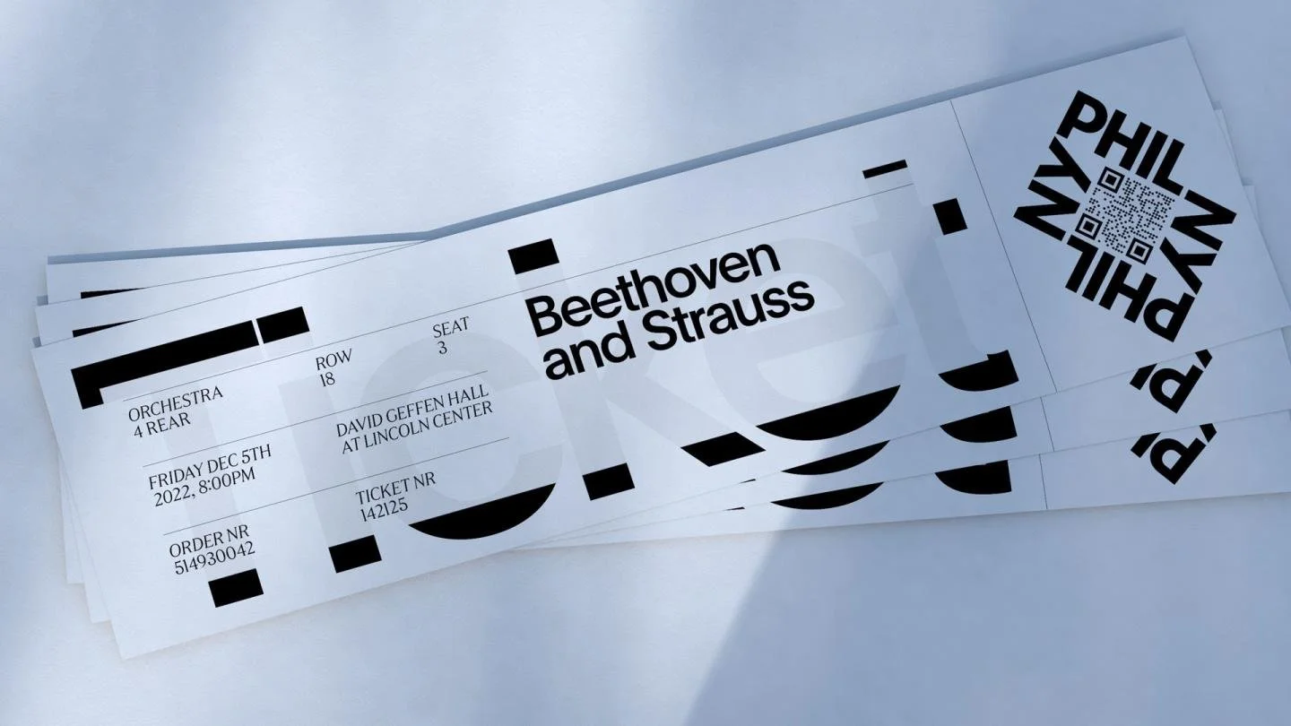The newly reimagined David Geffen Hall brings the stage towards the centre, letting the audience surround the orchestra. The idea of surrounding a stage informed the new NY Phil logo, which can be used to frame photography and create the sense of intimacy the new hall brings. The square is a nod to the location of the hall: the Lincoln Center, a rare square inside the rectangular grid that is New York. The identity became an invitation to a new, much broader audience, inviting all New Yorkers to enjoy the NY Phil.
